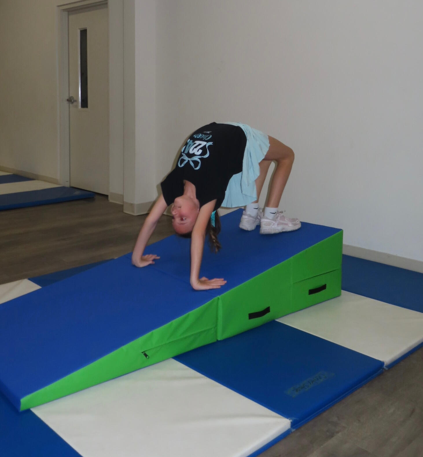 This program is an ongoing weekly tumbling class designed to help athletes build strength, coordination, and confidence while developing proper tumbling technique through skill progressions appropriate to their level. Athletes will be placed in groups based on skill level.Beginner Level: Athletes will learn the fundamentals of tumbling, including forward and backward rolls, handstands, cartwheels, bridges, and kickovers.